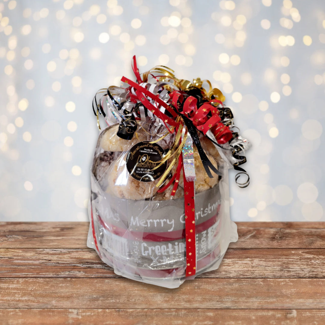 Découvrez notre coffret gourmand de 600 g, un délicieux assortiment de Bonbonetti fabriqués artisanalement dans notre biscuiterie.